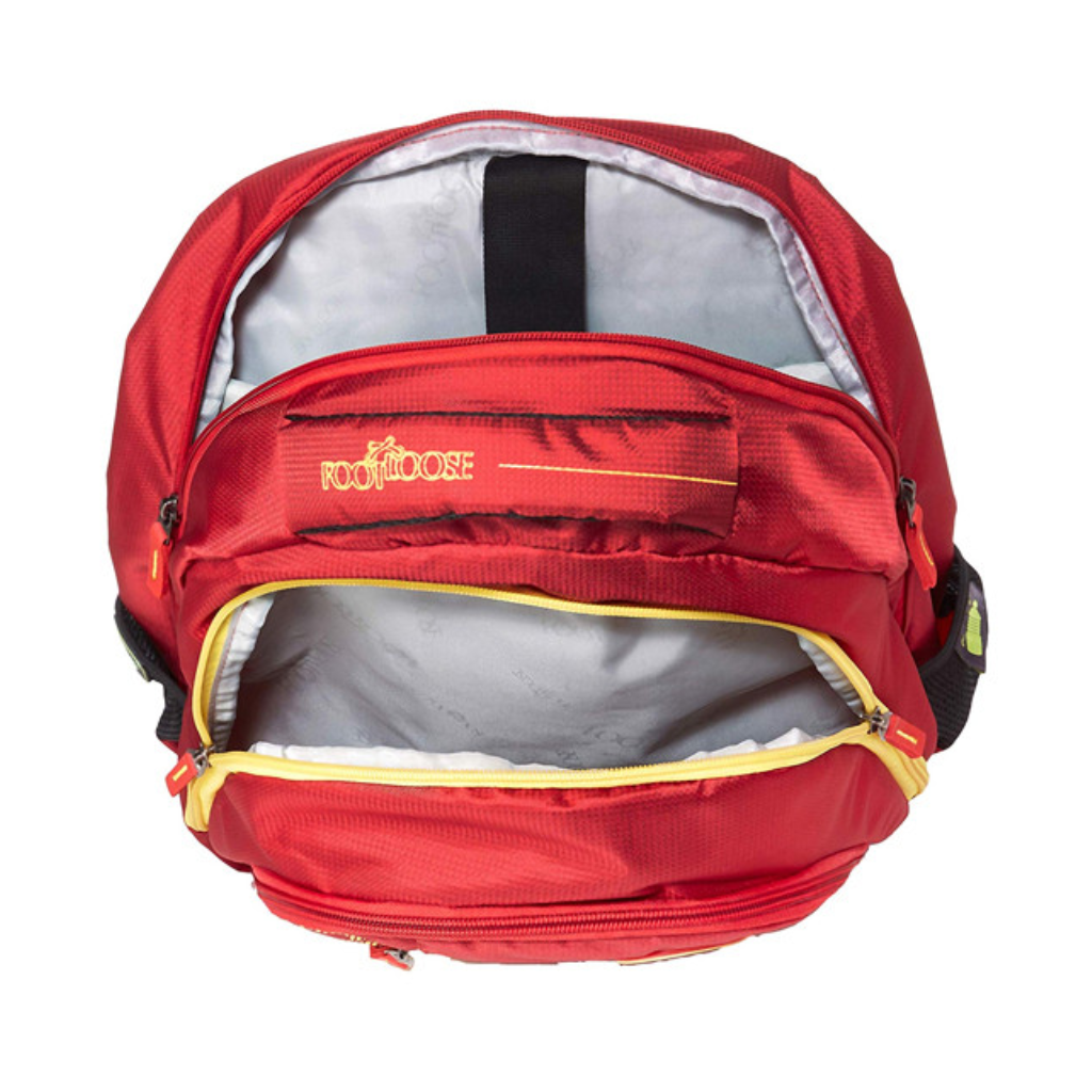 The Skybags Footloose Gizmo-5 is a vibrant red 30-liter laptop backpack that merges style with functionality. It features a padded compartment for laptops, spacious main pockets, and front organizers for easy access. With cushioned shoulder straps and airflow back padding, it’s comfortable to carry and built to last.